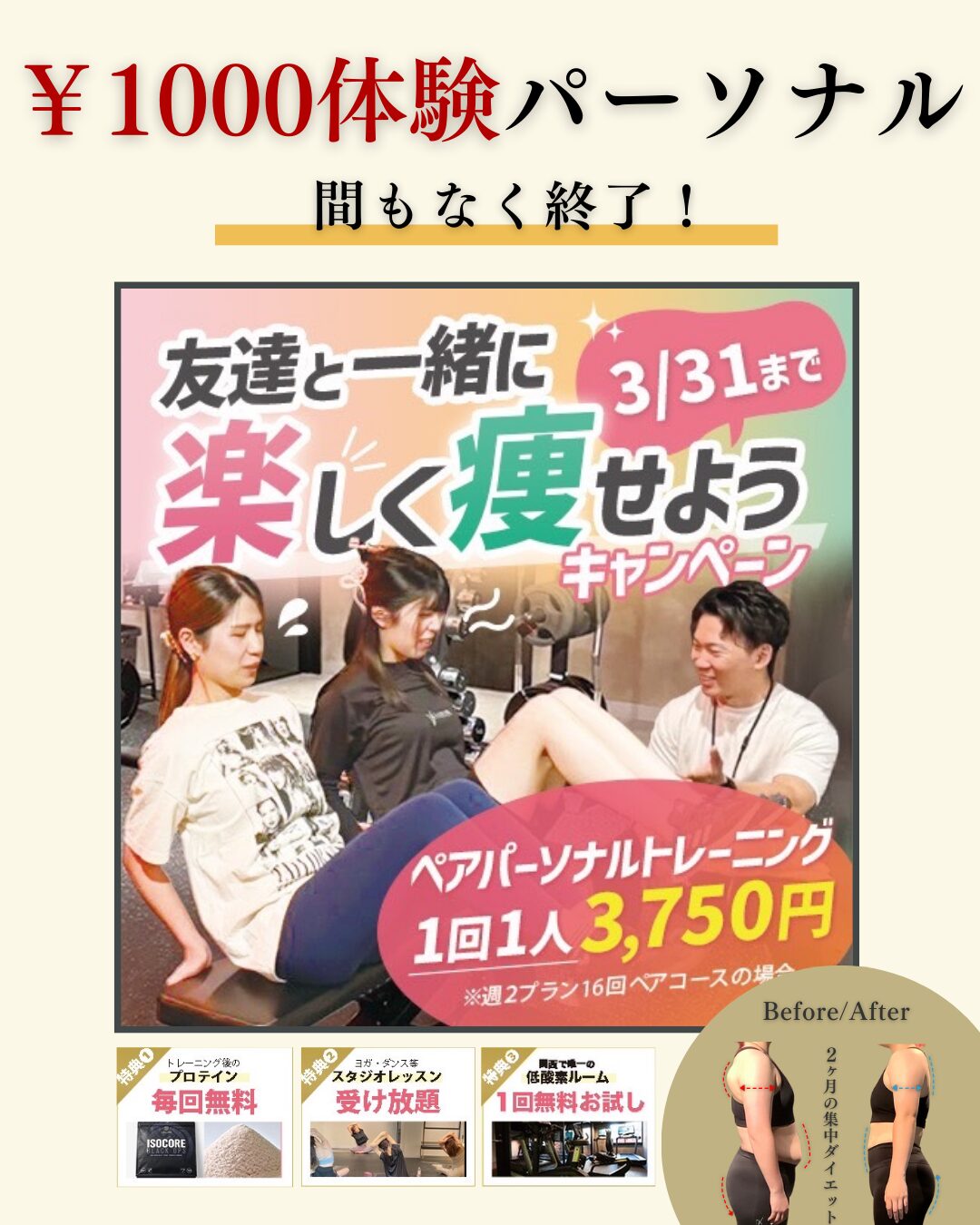 🎉【3月限定キャンペーン】体験パーソナルトレーニングが今だけ特別価格!